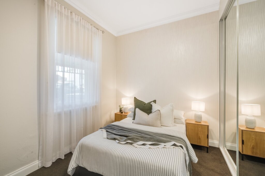 - Two additional bedrooms with mirror robes share a full-size family bathroom