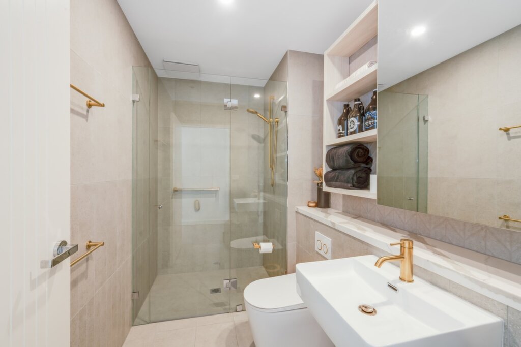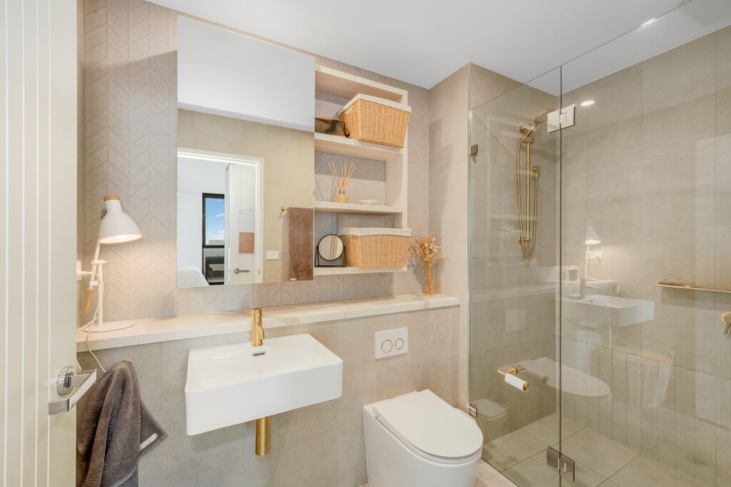 - Two fully tiled bathrooms with quality fittings, in-wall toilets, and clever storage