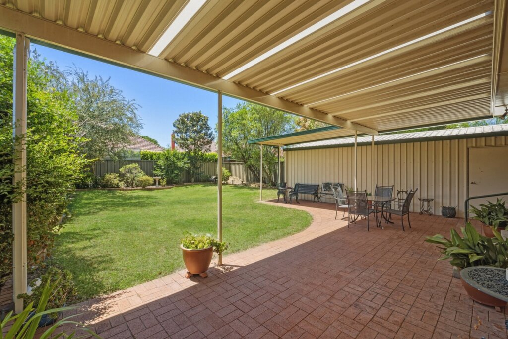 - Covered entertaining area overlooks fenced yard, 7.8m x 2.8m garage and carport