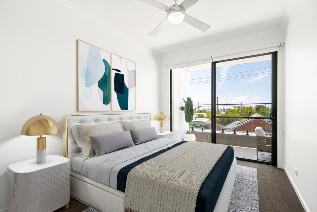 Set on the second floor, this stylish two-bedder is ideal for first homebuyers, investors, or anyone chasing a lock-up-and-leave lifestyle. The open plan design flows from a sleek kitchen to a light-filled living and dining area, onto the balcony. The master bedroom enjoys a ceiling fan, built-in robe, and private ensuite. The second bedroom also includes a built-in robe and ceiling fan. Completing the layout is a combined main bathroom and laundry while a designated car space and shared rooftop terrace round out the offering.