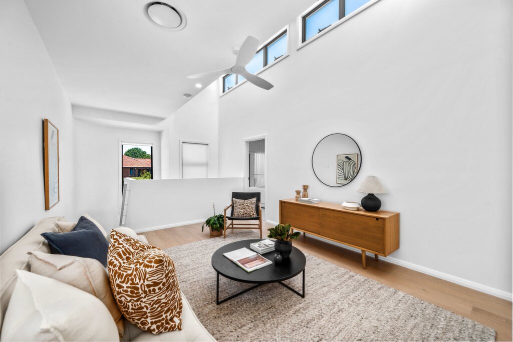 Step inside and you'll find a home that feels light, open, and generous. Downstairs, 2.7m ceilings frame the airy open-plan living space, anchored by a showpiece island kitchen. Upstairs, a second living area soars under 4.4m raked ceilings with clerestory windows streaming in natural light. There are three bedrooms, 2.5 high-end bathrooms, a home office nook, and a surprising amount of storage. Outdoors, enjoy a prized private north-east facing yard with a low-maintenance design, light-filled alfresco, and a fully equipped barbecue kitchen for relaxed entertaining.