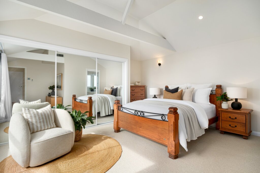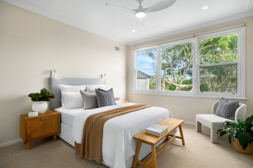 - Master bedroom with ensuite, custom built-in wardrobe and garden views