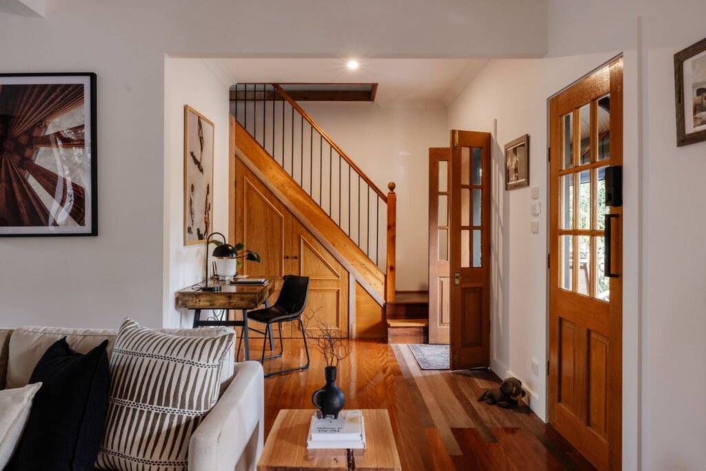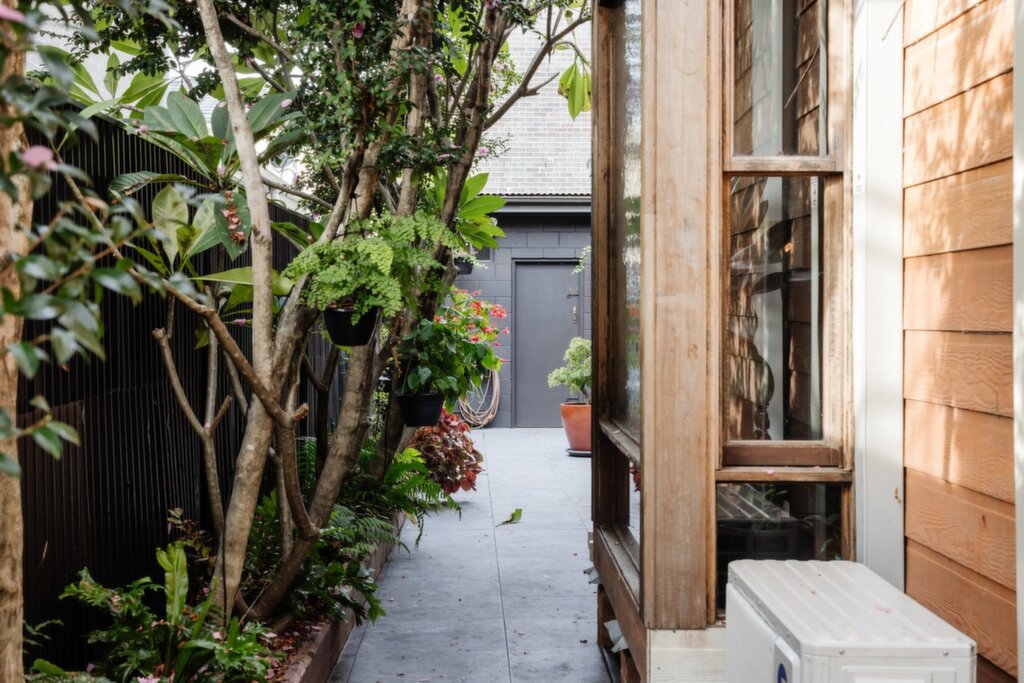 Nestled within this thriving community hub is a tranquil and private residence designed to make the most of its surroundings. Multiple outdoor and indoor living zones invite you to chase the sun throughout the day or unwind within the unique microclimates created by the beautifully landscaped gardens. Set on a low-maintenance corner block complete with productive edible gardens, the groundwork has already been laid for those inspired by a more sustainable lifestyle. This is far from your typical cottage. Expansive glazing, an open-plan layout, and a light-filled conservatory create a series of bright living spaces that feel effortlessly connected to nature.