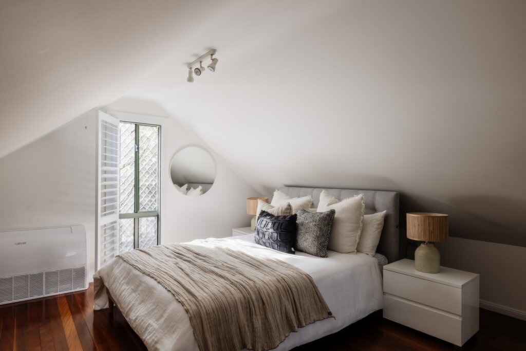- Expansive loft bedroom with air conditioning, adaptable for multiple uses