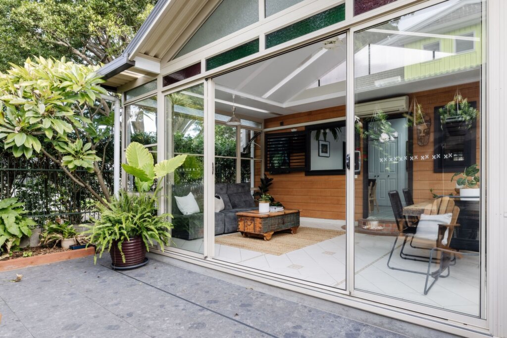 - Elegant French doors opening to a veranda overlooking the river, complete with Ziptrak blinds for relaxed afternoon drinks